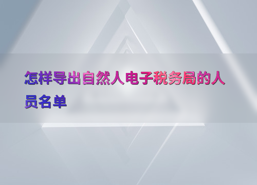 怎样导出自然人电子税务局的人员名单