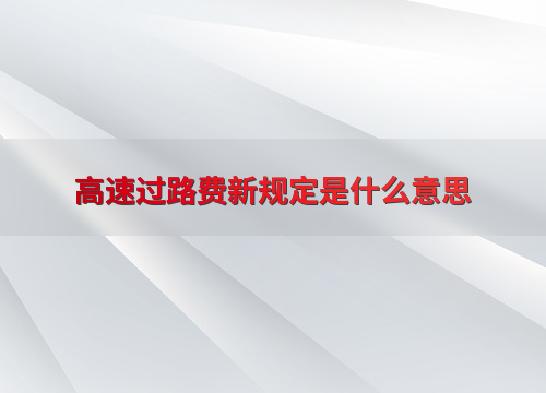 高速过路费新规定是什么意思