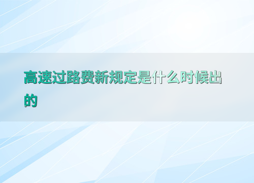 高速过路费新规定是什么时候出的