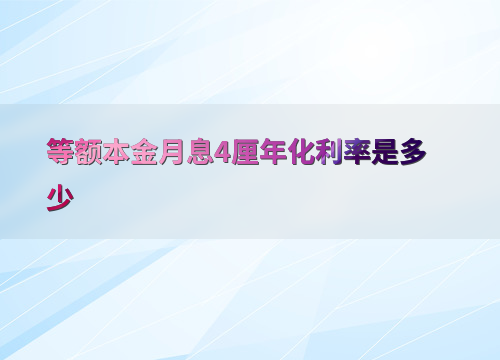 等额本金月息4厘年化利率是多少