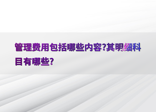 为了更精确地管理和控制管理费用,企业通常会将其细分为多个明细科目。每个明细科目代表一种特定类型的管理费用。