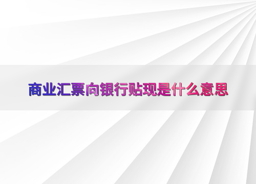 商业汇票向银行贴现的含义