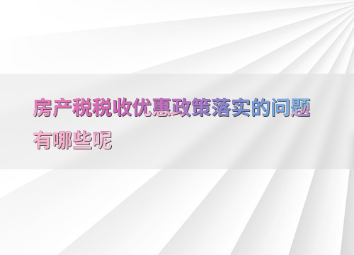 在当前经济环境下,房产税税收优惠政策的落实面临诸多复杂问题。