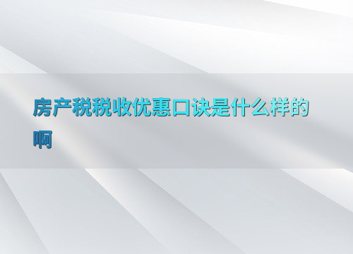 在理解房产税的税收优惠政策时,掌握一些简便的记忆口诀能够帮助我们更好地应用这些政策。