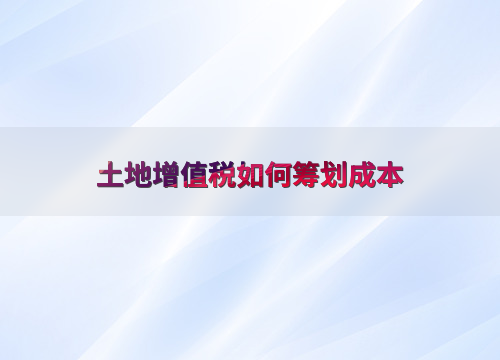 土地增值税如何筹划成本