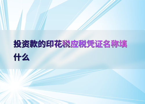 在处理投资款相关的财务事务时,正确填写印花税应税凭证名称至关重要。