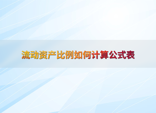 流动资产比例 = (流动资产 ÷ 总资产) × 100%
