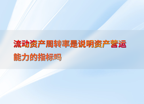 流动资产周转率是说明资产营运能力的指标吗