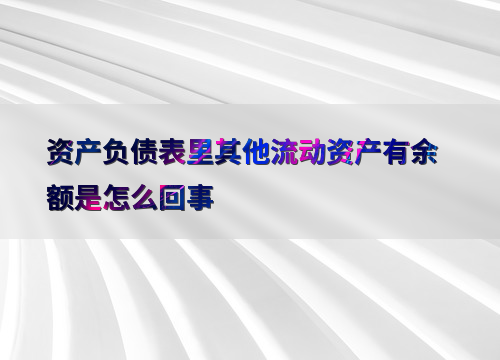 在资产负债表中,其他流动资产是指那些不属于现金、应收账款、存货等主要流动资产类别的短期资产。