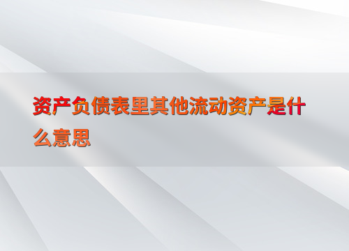 资产负债表里其他流动资产是什么意思