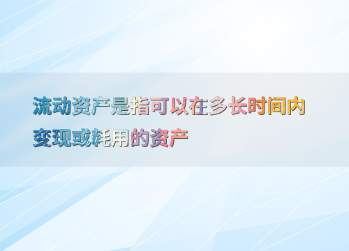 流动资产是指企业在一个营业周期内,通常不超过一年或一个经营周期内可以变现或耗用的资产。