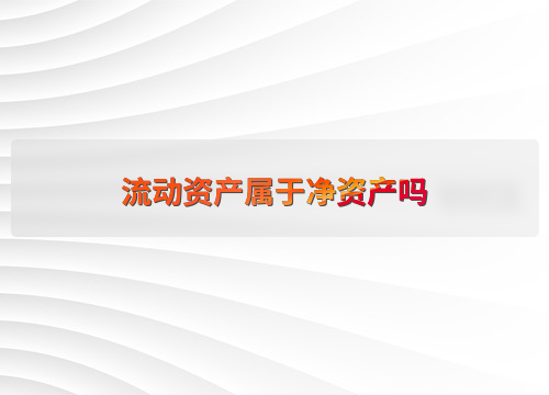 而流动资产只是总资产中的一个组成部分,因此不能简单地将流动资产视为净资产。