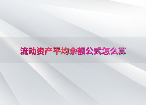 流动资产平均余额公式解析