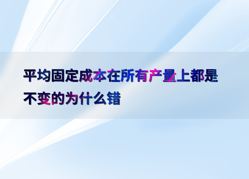 固定成本与产量的关系在财务管理中,平均固定成本(AFC)是指总固定成本(TFC)除以产量(Q)。其公式为:AFC = TFC ÷ Q。从这个公式可以看出,随着产量的增加,分母变大,因此AFC会逐渐减小。这表明AFC并不是在所有产量上都保持不变。例如,假设一家工厂的固定成本为10,000元,当生产量为100单位时,AFC为100元;而当生产量增加到200单位时,AFC则降为50元。这种变化展示了AFC随产量增加而递减的趋势。