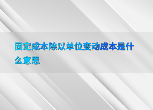 在财务管理中,固定成本除以单位变动成本是一个重要的财务指标,用于评估企业的成本结构和盈利能力。