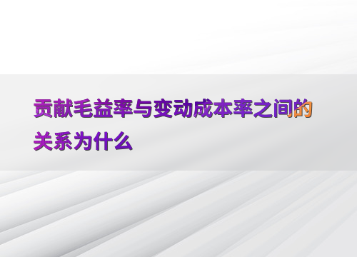 贡献毛益率与变动成本率的关系在财务管理中,贡献毛益率(Contribution Margin Ratio, CMR)和变动成本率(Variable Cost Ratio, VCR)是两个重要的财务指标。CMR表示每单位销售收入中用于弥补固定成本并产生利润的部分,其公式为:CMR = (销售收入 - 变动成本) / 销售收入。