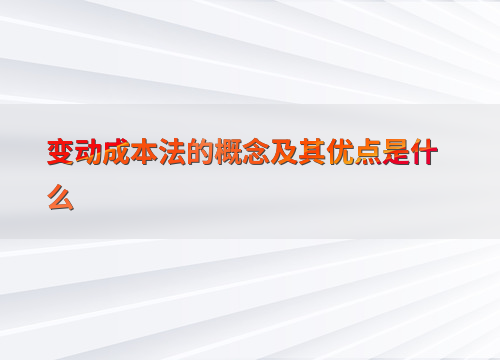 变动成本法的概念及其优点是什么