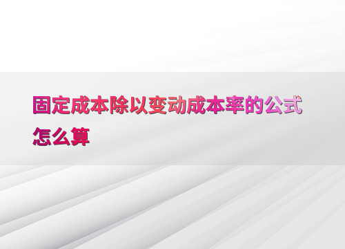 FC / VCR = 固定成本 (FC) ÷ 变动成本率 (VCR)