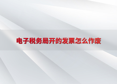 电子税务局开的发票怎么作废