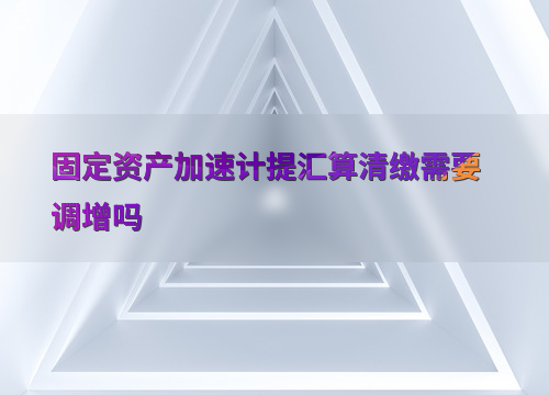 固定资产加速计提汇算清缴需要调增吗