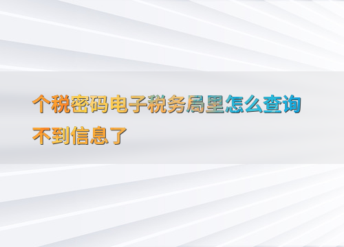 个税密码电子税务局里怎么查询不到信息了