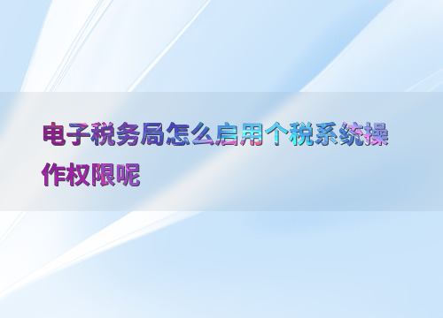 电子税务局怎么启用个税系统操作权限呢