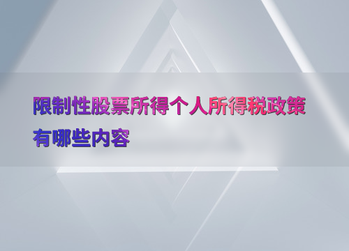 限制性股票所得是否可以分期缴纳个人所得税?答:根据最新政策,符合条件的员工可以选择分期缴纳个人所得税,具体期限和方式需遵循当地税务机关的规定。