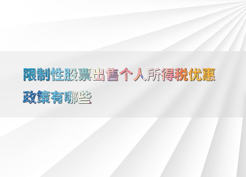 未来限制性股票出售的税收政策可能有哪些变化?答:随着经济环境的变化,政府可能会调整相关政策以促进经济发展或调节收入分配。例如,增加对中小企业的支持力度,或者调整税率结构以适应新的经济形势。