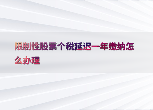 近年来,随着企业激励机制的多样化,限制性股票作为一种重要的股权激励方式被广泛应用。根据相关政策规定,员工在获得限制性股票时需要缴纳个人所得税,但为了减轻纳税人的负担,国家允许符合条件的企业和个人将个税缴纳时间推迟一年。