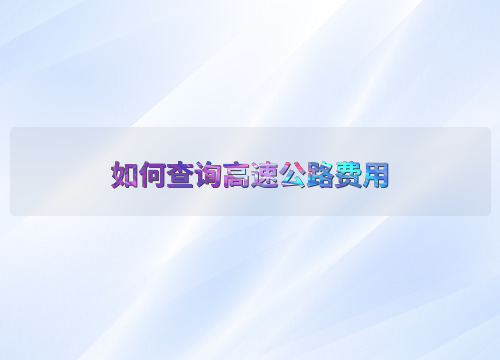 如何查询高速公路费用