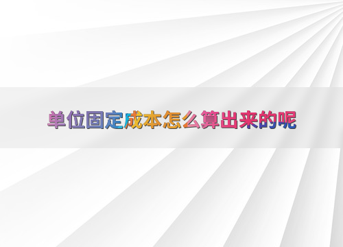 单位固定成本怎么算出来的呢