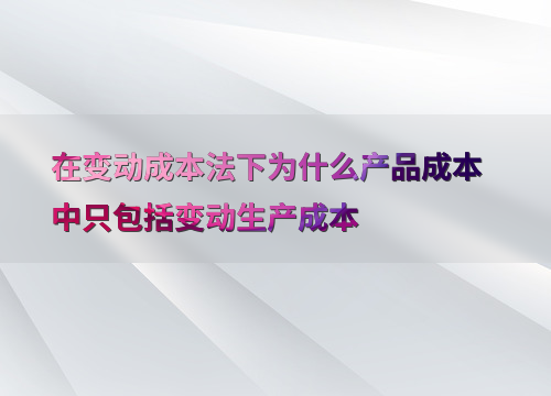 在变动成本法下为什么产品成本中只包括变动生产成本