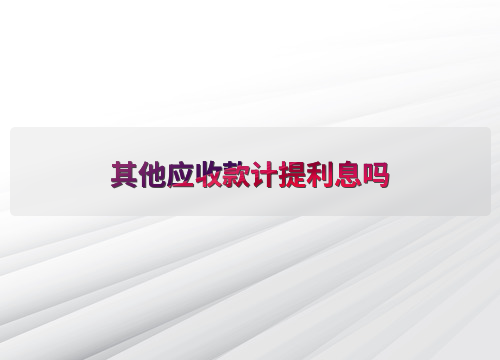 如何确定其他应收款是否需要计提利息?答:关键在于查看相关合同或协议中是否有明确的利率约定。如果没有明确规定,则一般不需要计提利息。此外,还需考虑该款项的性质和用途,如果是借款性质,则更有可能需要计提利息。