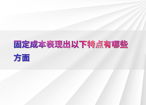 固定成本表现出以下特点有哪些方面