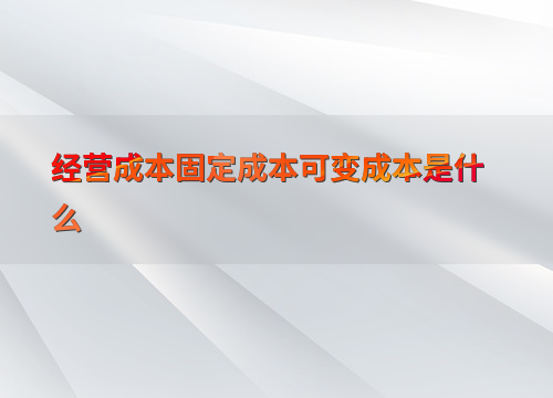 经营成本固定成本可变成本是什么