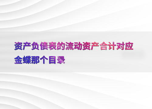 金蝶软件通过其模块化设计,将企业的各类财务信息分类管理。流动资产通常包括现金、应收账款、存货等项目。在金蝶系统中,这些数据分布在不同的目录下,例如“货币资金”、“应收账款”以及“存货”等模块。用户可以通过进入“财务报表”功能区,选择相应的报表模板来查看这些数据。具体而言,流动资产合计的计算公式为: