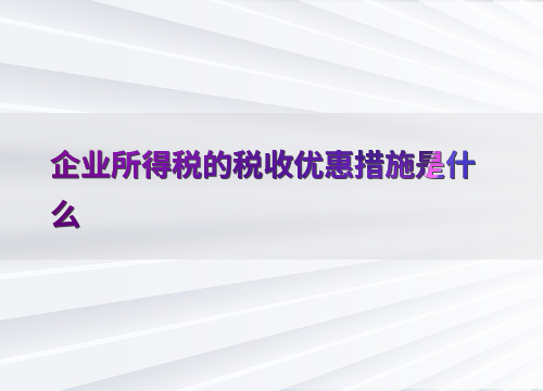 企业所得税的税收优惠措施是什么