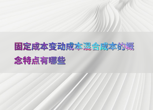 固定成本变动成本混合成本的概念特点有哪些