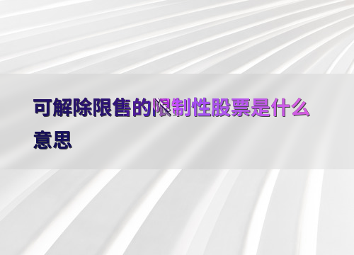 在现代企业治理中,可解除限售的限制性股票是一种激励机制,主要用于员工持股计划或管理层激励。