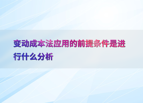 变动成本法应用的前提条件是进行什么分析