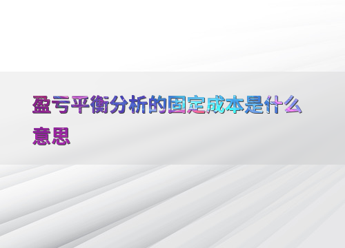 盈亏平衡分析的固定成本是什么意思