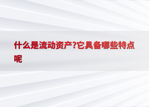 它们的特点是周转速度快,流动性强,能够迅速转化为现金或被消耗掉。流动资产在企业的日常运营中起着至关重要的作用,确保了企业的资金流顺畅和业务的正常运转。