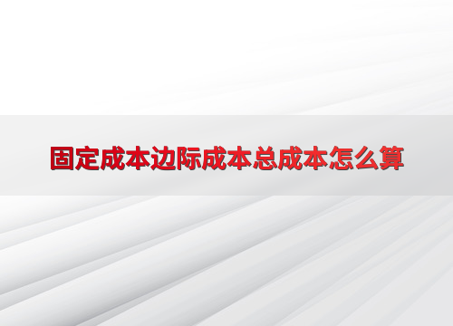 固定成本边际成本总成本怎么算