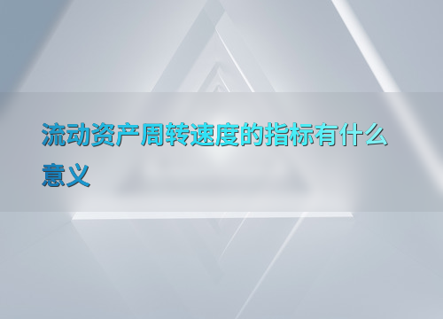 流动资产周转速度的指标有什么意义