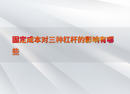 除了经营杠杆外,固定成本还影响着财务杠杆和总杠杆。财务杠杆通过债务融资放大了股东收益的波动性,公式为:DFL = EBIT / (EBIT - I),其中I表示利息费用。高固定成本通常伴随着较高的负债水平,因为企业需要资金来维持运营。这使得财务杠杆效应增强,增加了企业的财务风险。