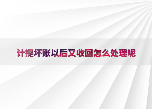 计提坏账以后又收回怎么处理呢