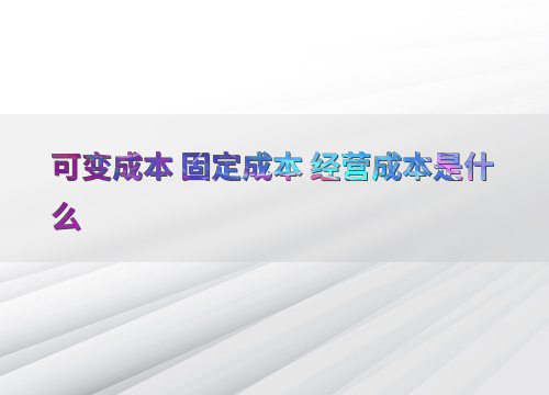 可变成本 固定成本 经营成本是什么
