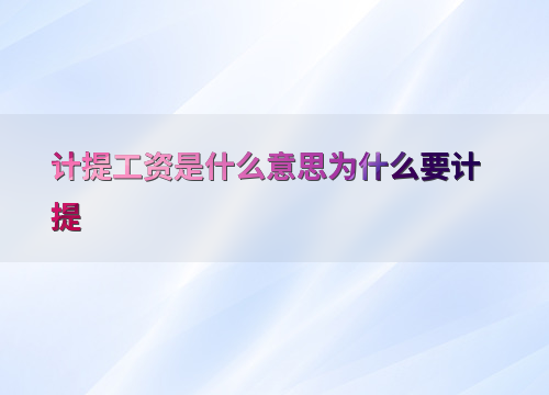 计提工资是什么意思为什么要计提
