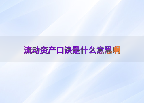 流动资产口诀是什么意思啊