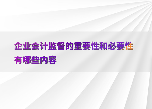 企业会计监督的重要性和必要性有哪些内容
